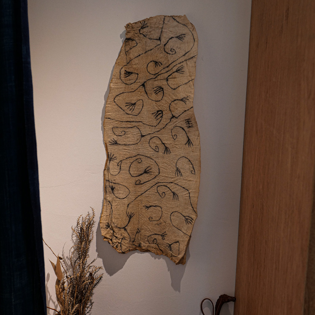 천연 안료로 직접 무늬를 그리고 말려 완성됩니다.