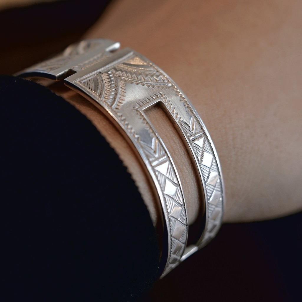 투아레그 장인이 쏘(타가네)로 하나하나 직접 조각해 완성한 실버 링입니다.