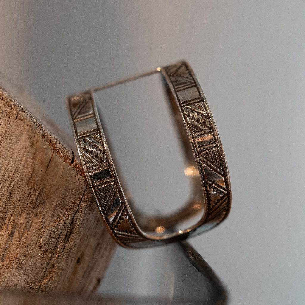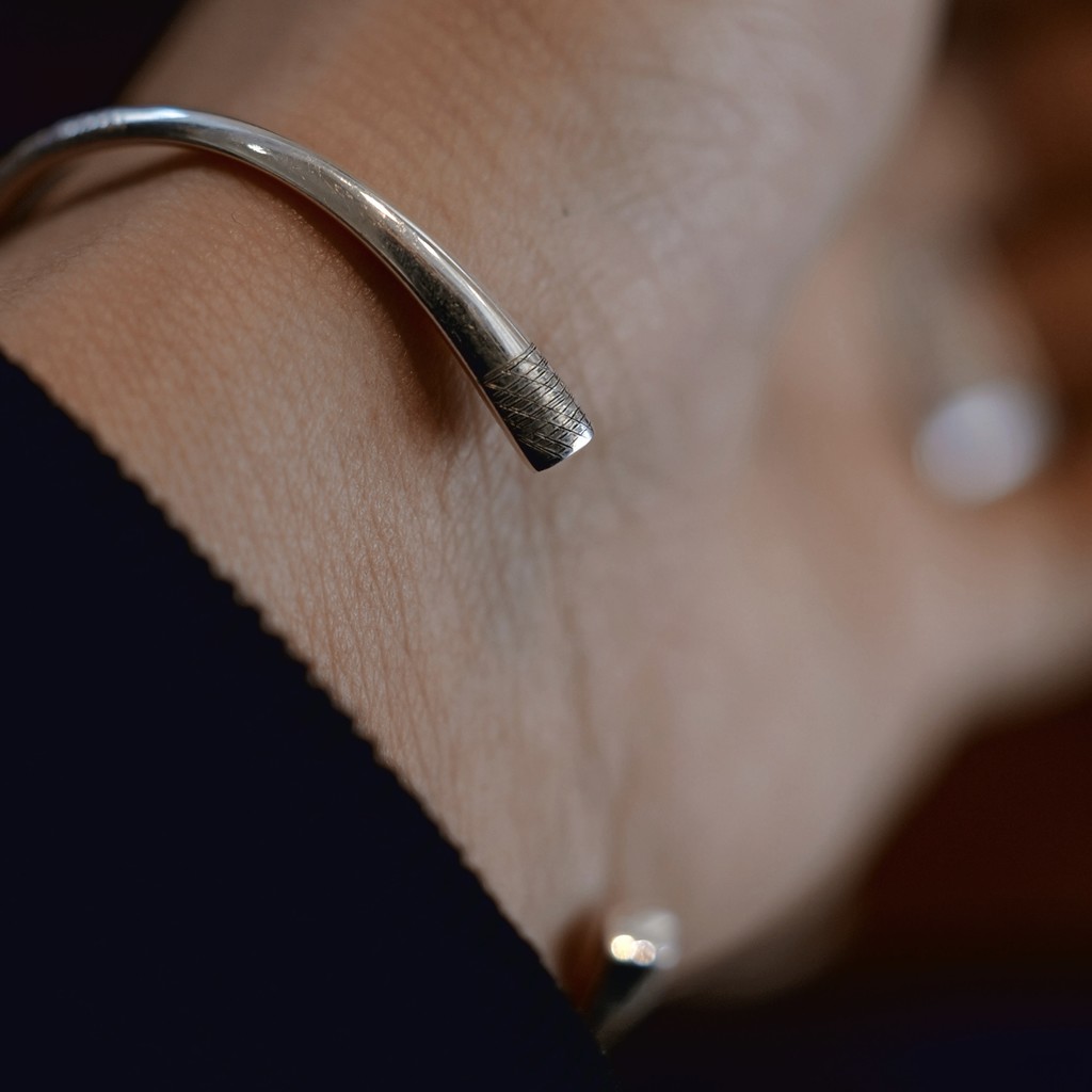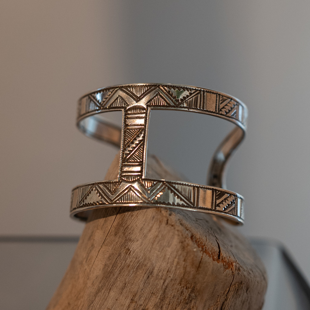 하나하나 손으로 조각해 완성한 와이드 뱅글입니다.