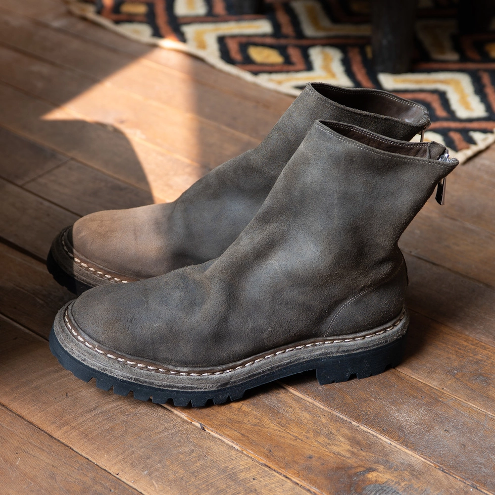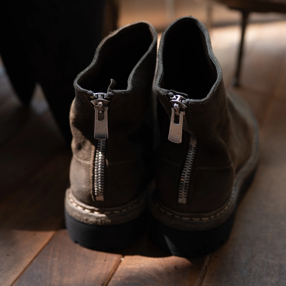 GUIDI를 대표하는 백지퍼 부츠로, 가죽을 여러 장 이어 붙이는 방식이 아닌,