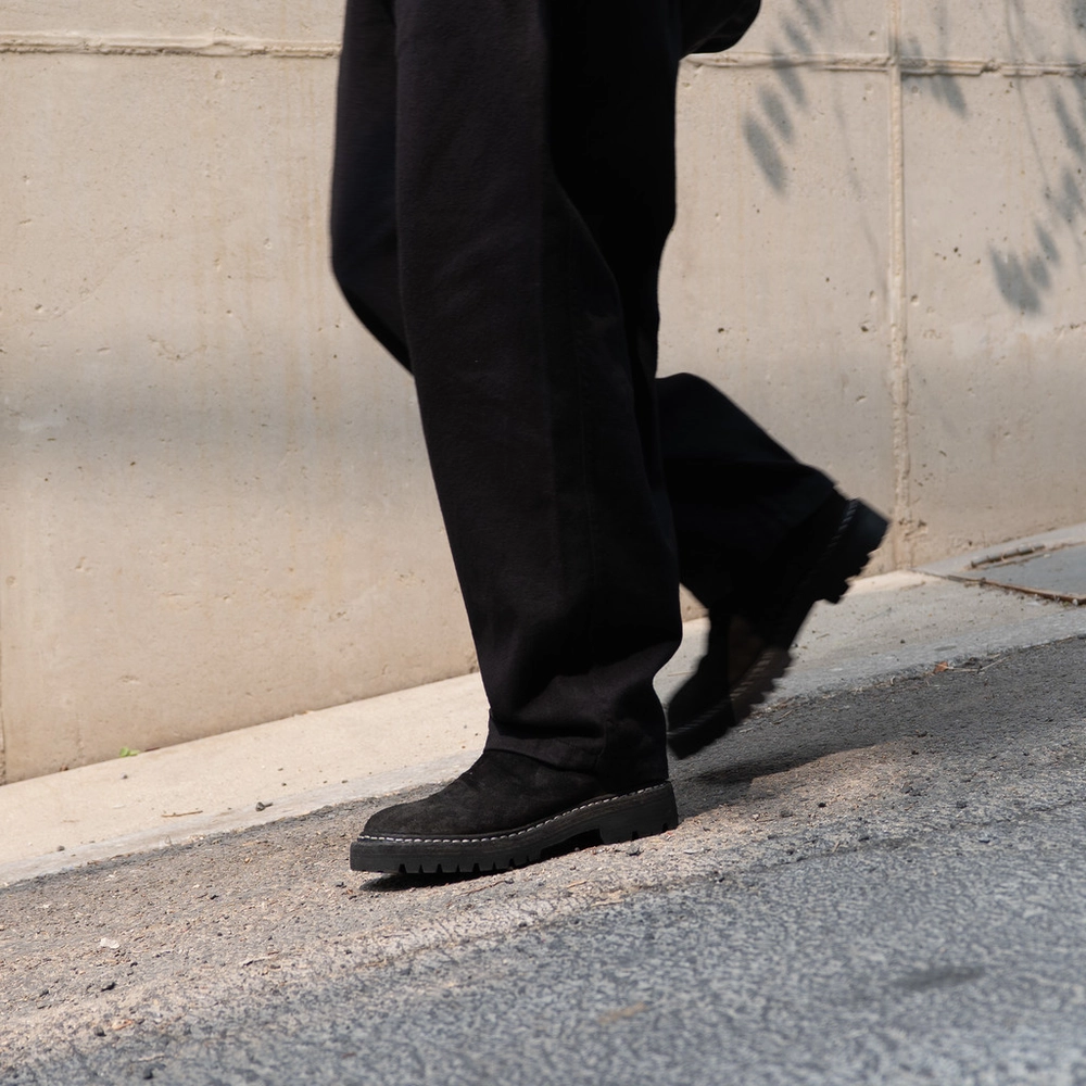 이중 스티치가 특징인 노르웨지안 제법을 적용하여 높은 내구성과 거친 질감을 동시에 갖추었으며,