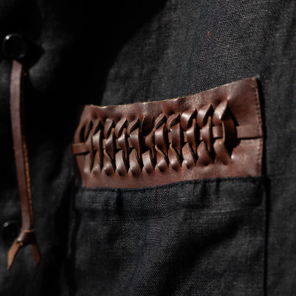 가죽 파츠가 몸판에 직접 닿지 않도록 포켓에 손수건 등을 끼워 넣은 뒤