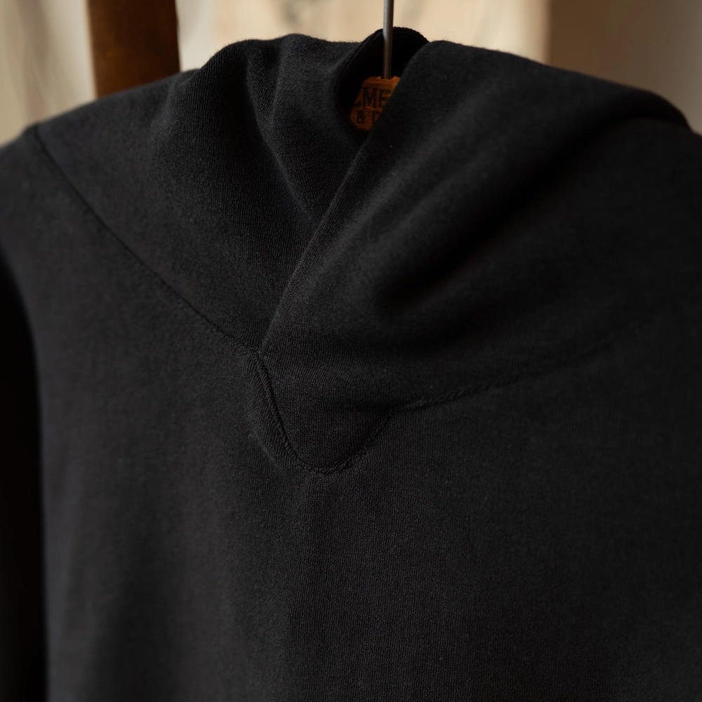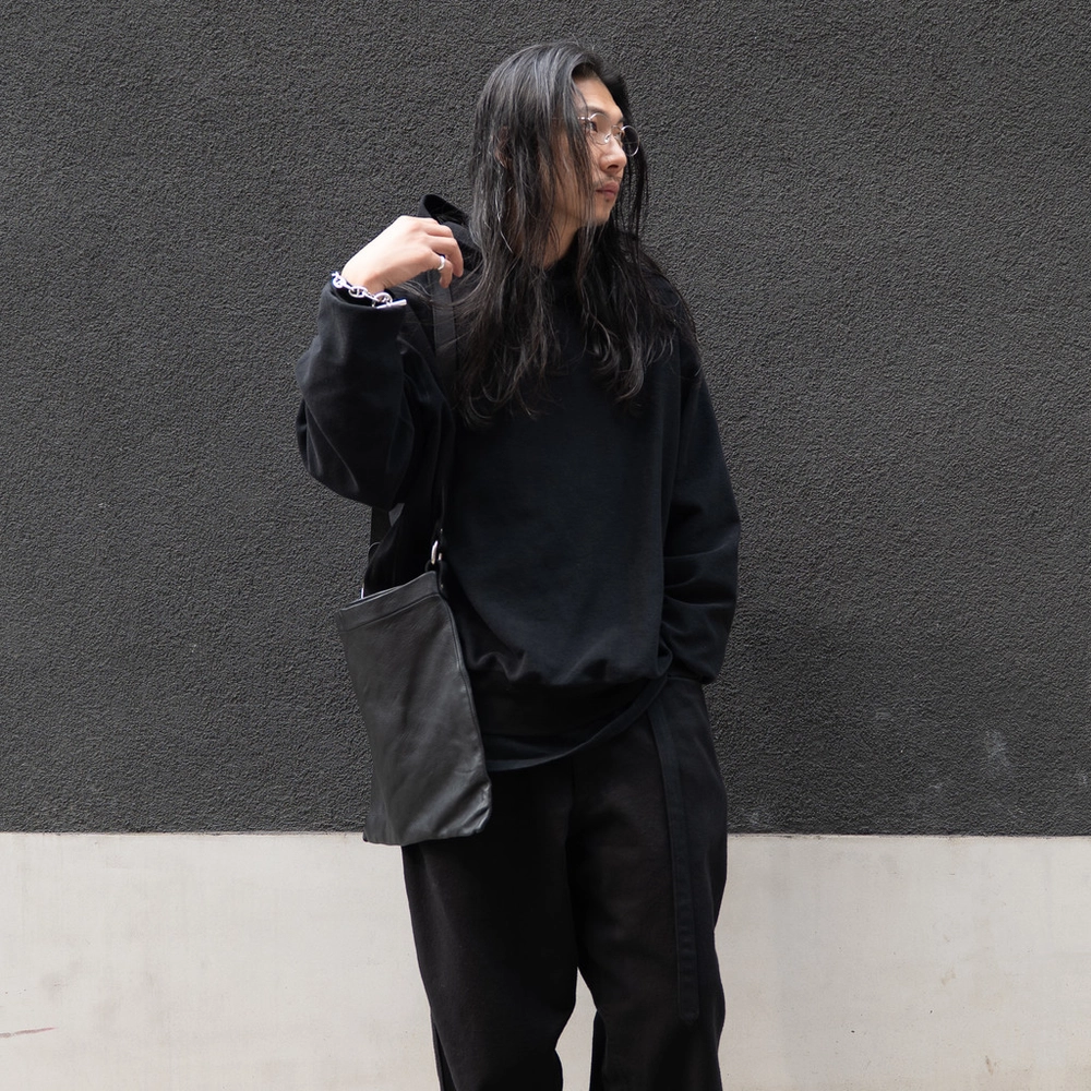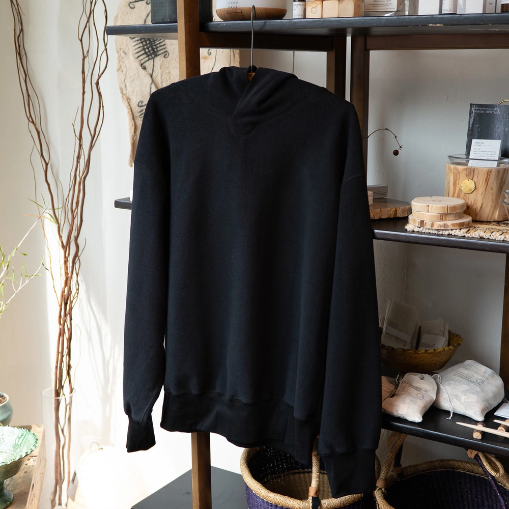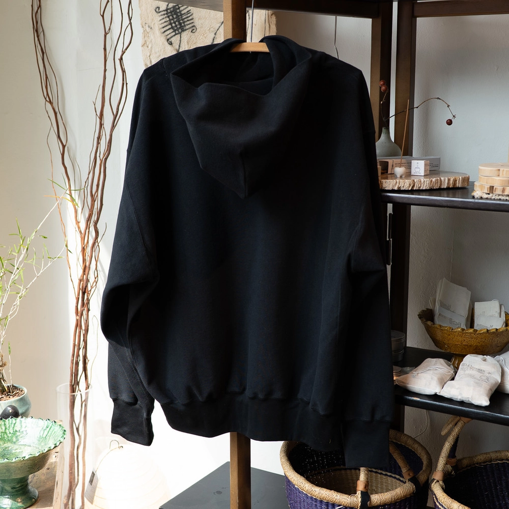 스웨이드와 같은 부드럽고 고급스러운 표면감을 구현하고 있는 여유로운 실루엣의 후드 입니다.
