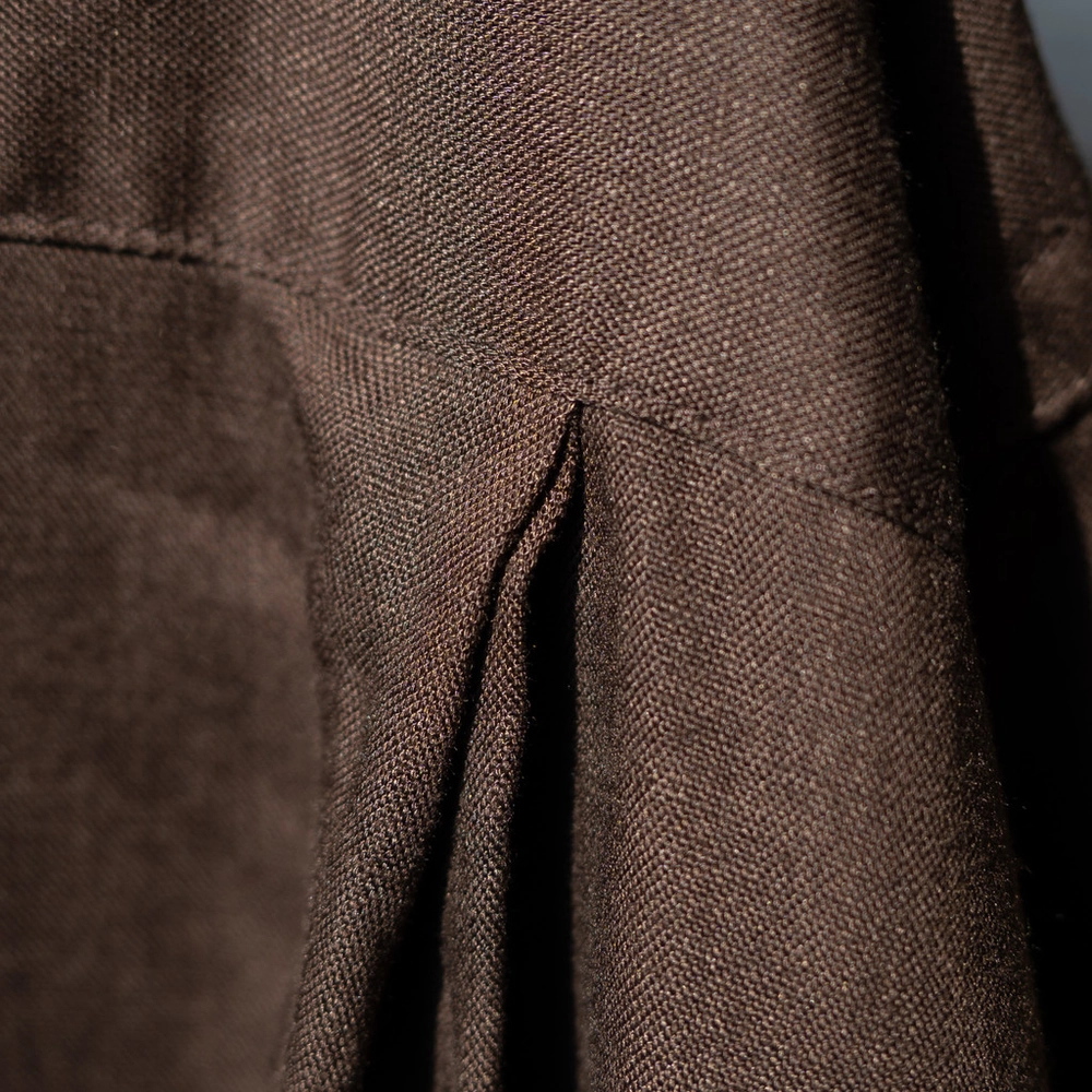 레이온의 유려한 드레이프성과 린넨의 볼륨감이 어우러져, 부드러우면서도 남성적인 소재감으로 세련된 분위기를 완성합니다.