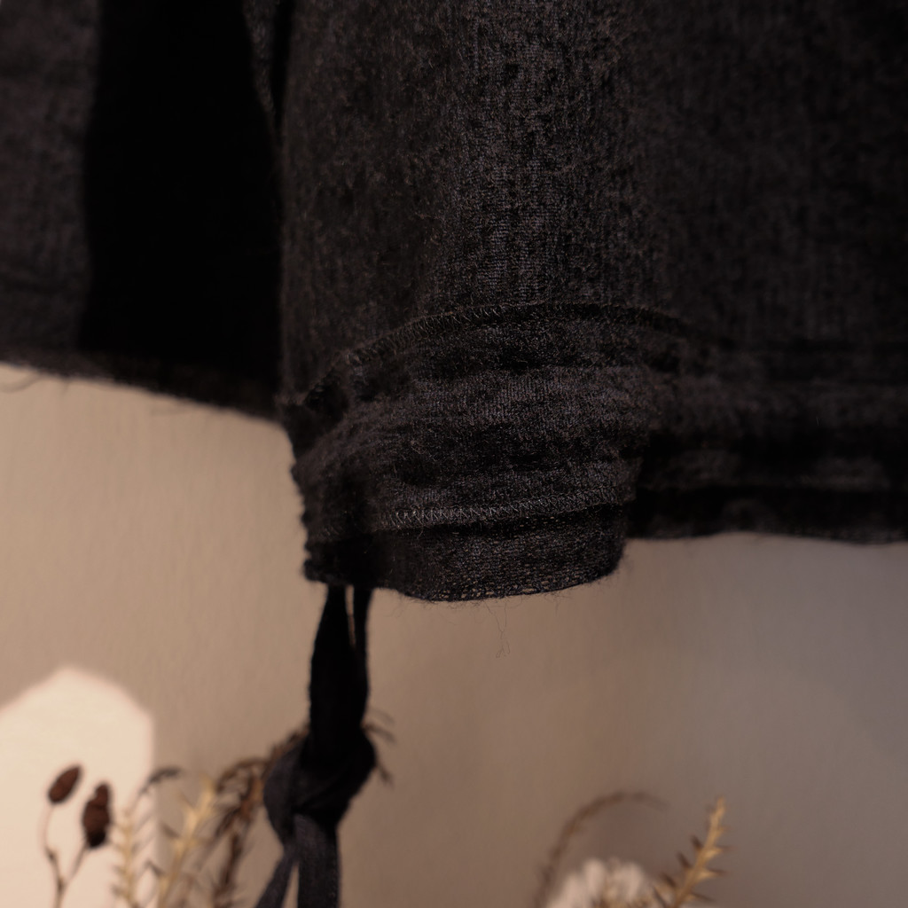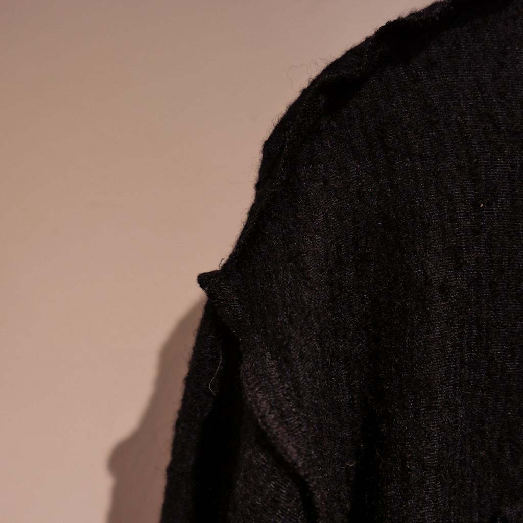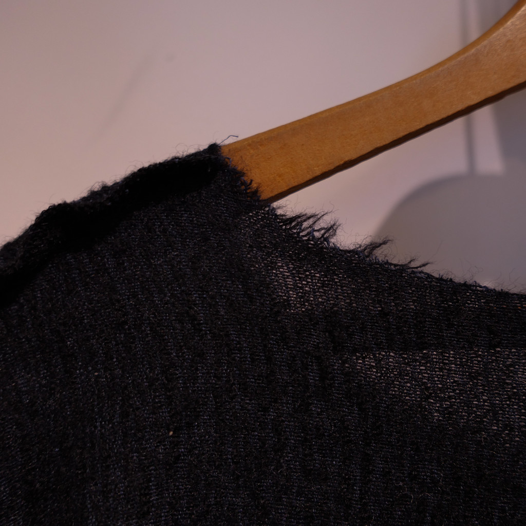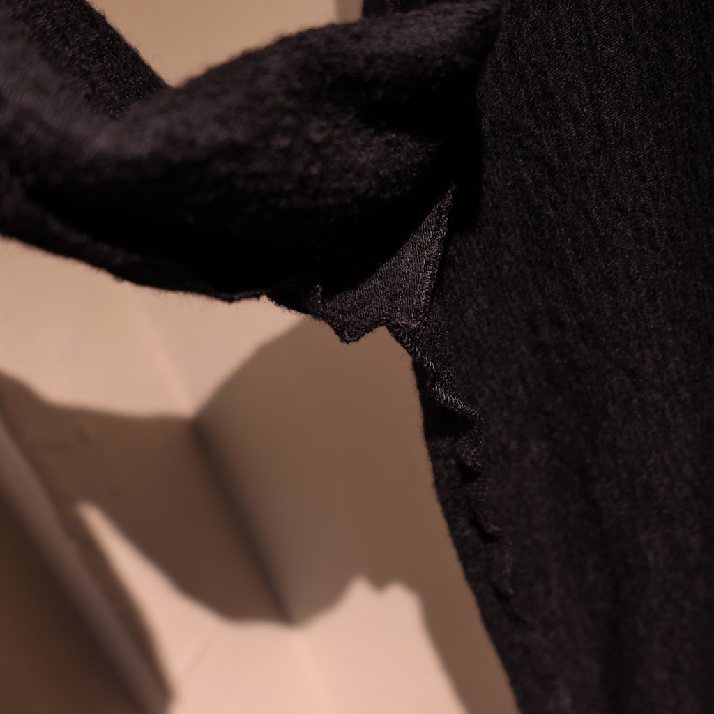 카라, 밑단, 소매단은 모두 절단 마감으로 처리되었으며,