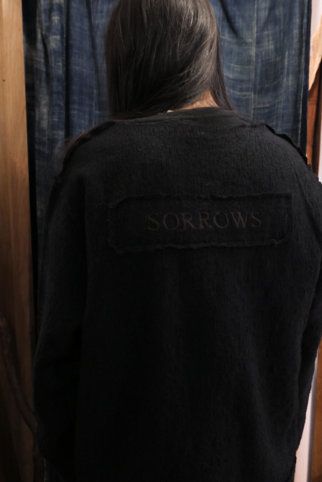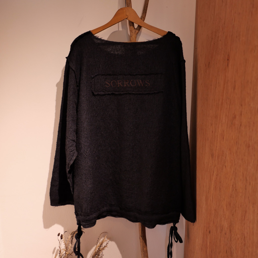 뒷면에는 시즌 컨셉인 소설 『Deep River』의 한 구절에서 영감을 받은 “SORROWS” 자수가 새겨진 와펜이 부착되어 있습니다.
